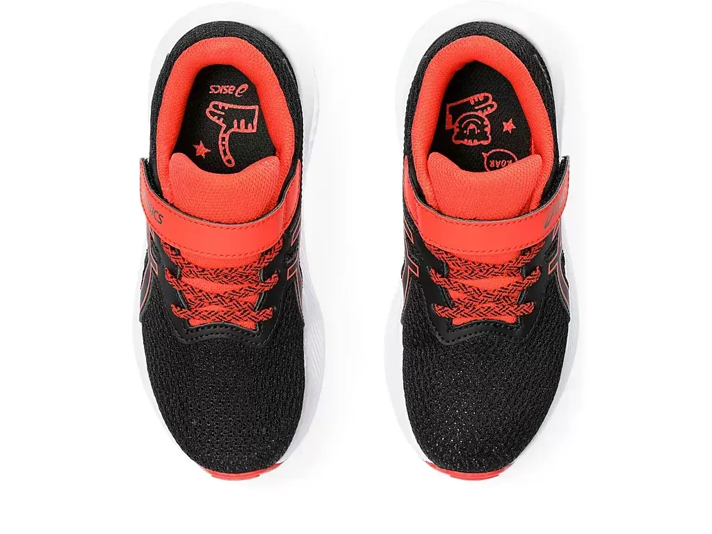Pruhy ASICS® na bocích jsou zároveň překryty duhovým vzorem pro poutavý vzhled. Také jsme integrovali stélku CUB MATCH™ s grafikou Tiger®, která dětem pomáhá rozlišit levou botu od pravé.