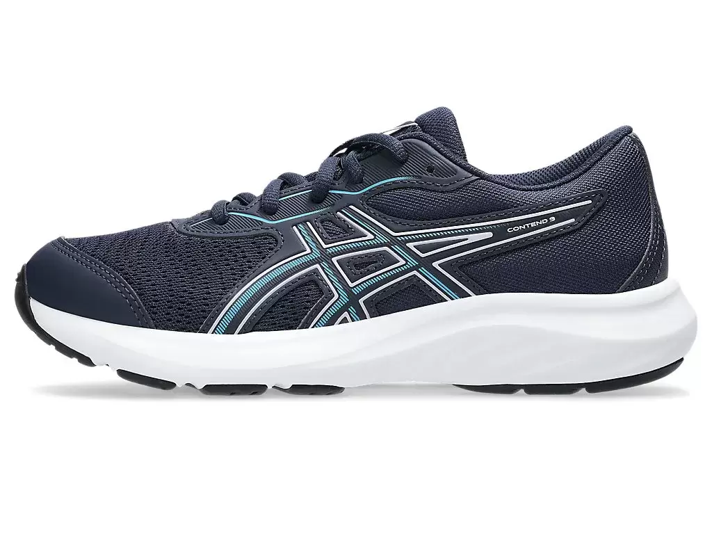 Bota CONTEND™ 9 GRADE SCHOOL je navržena pro mladé nožičky. Detaily, jako je výztuha špičky, gumové šití špičky a pevná gumová podrážka, zvyšují odolnost a prodlužují životnost boty.