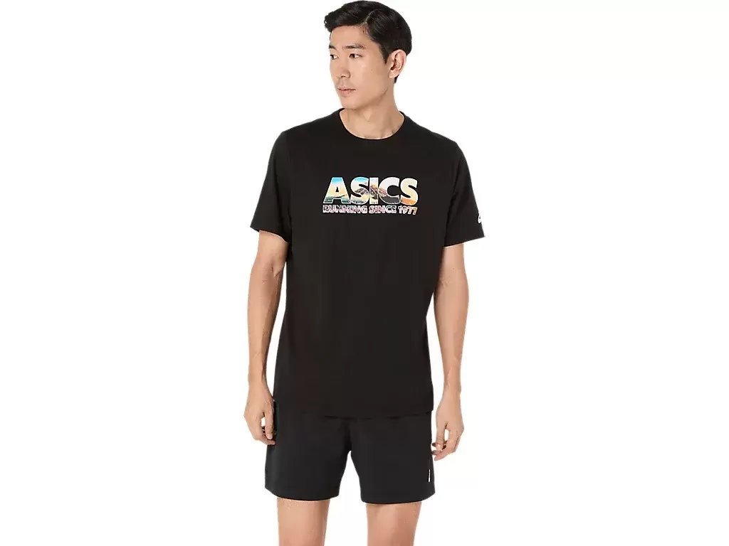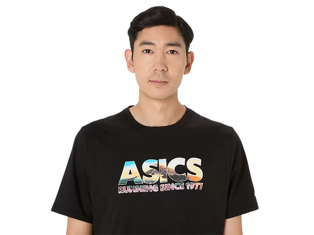 Toto pohodlné pletené tričko s krátkým rukávem je inspirováno horou Fudži. Přední grafika zdobí nápis „ASICS GLOBAL RUN CLUB“ s potiskem třešňového květu a horského vrcholu.