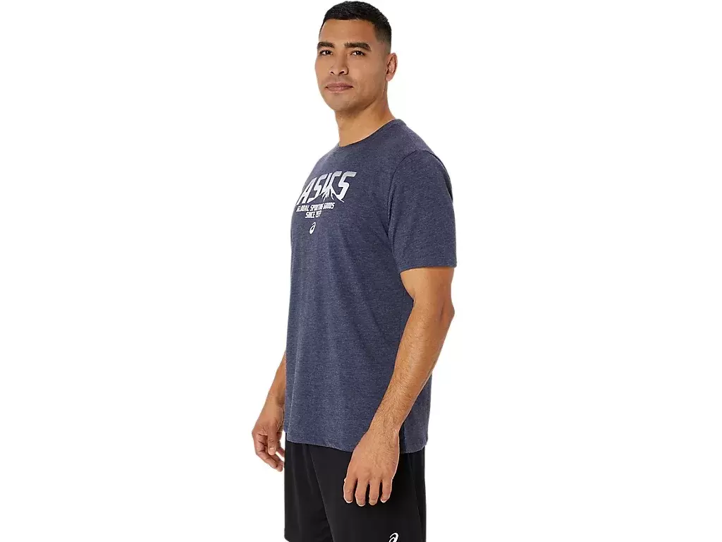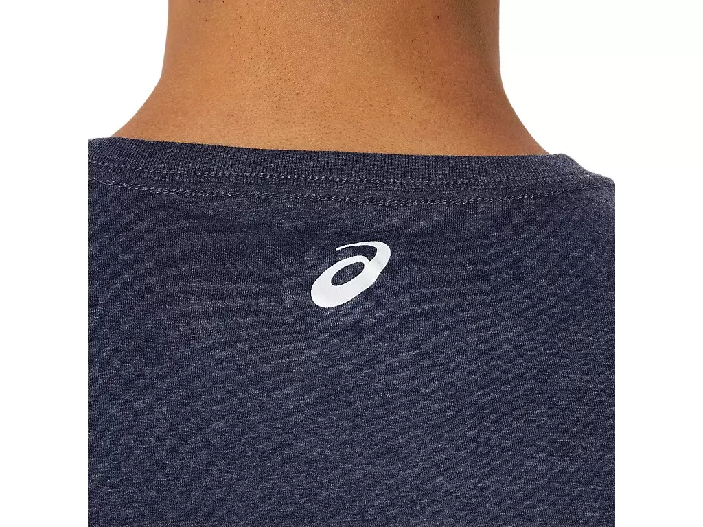 Tento top je vyroben z úpletu a je vhodný pro různé tréninkové režimy. Tričko má také logo ASICS na přední straně a logo hory, které je integrováno do designu.