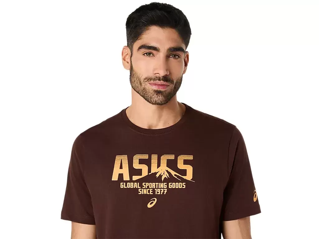 Tento top je vyroben z úpletu a je vhodný pro různé tréninkové režimy. Tričko má také logo ASICS na přední straně a logo hory, které je integrováno do designu.
